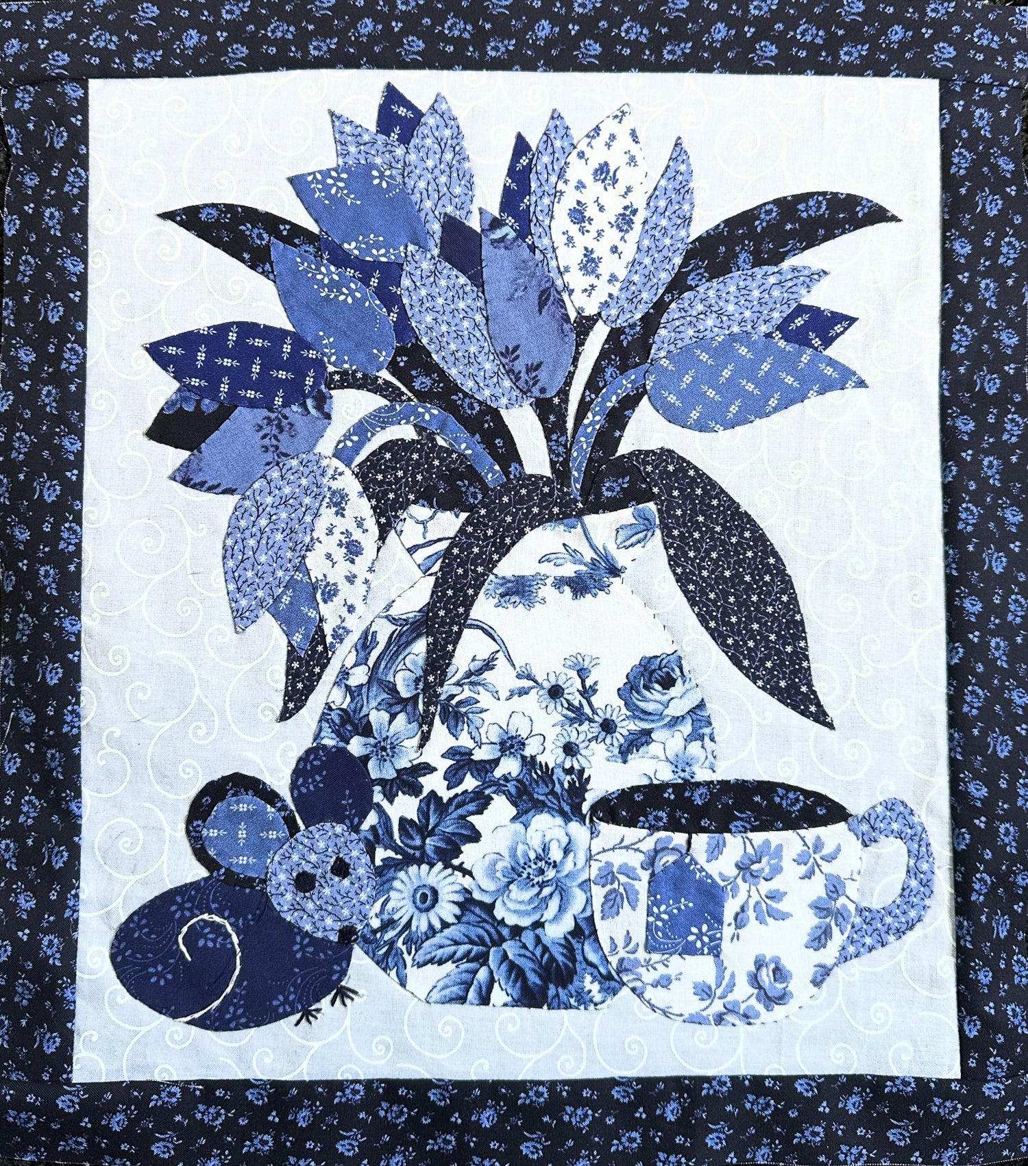 This beautiful applique pattern is inspired by delft pottery and features many shades of blue and white. Make it in blues, or experiment with color. Either way, it will sure to become an heirloom quilt!