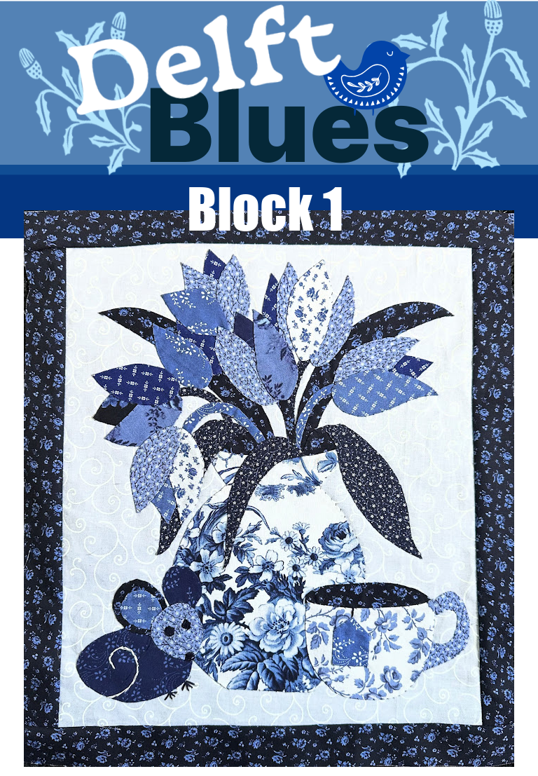 Block 1 measures 14" x 16" when finished and features a beautiful vase of tulips, teacup and sweet mouse. Block 1 is an 9 page downloadable pdf pattern which includes full instruction for this block, full sized templates and embroidery stitch suggestions.