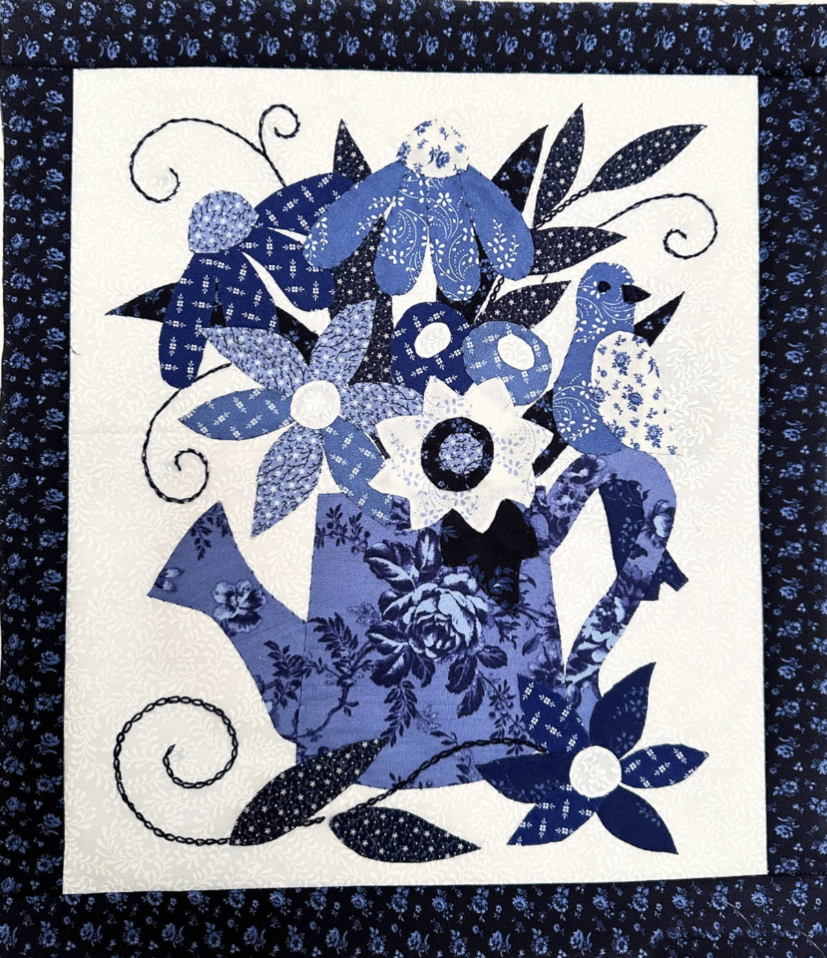 Block 2 measures 14" x 16" when finished and features a watering can with flowers and a sweet bird. Block 2 is an 9 page downloadable pdf pattern which includes full instruction for this block, full sized templates and embroidery stitch suggestions.