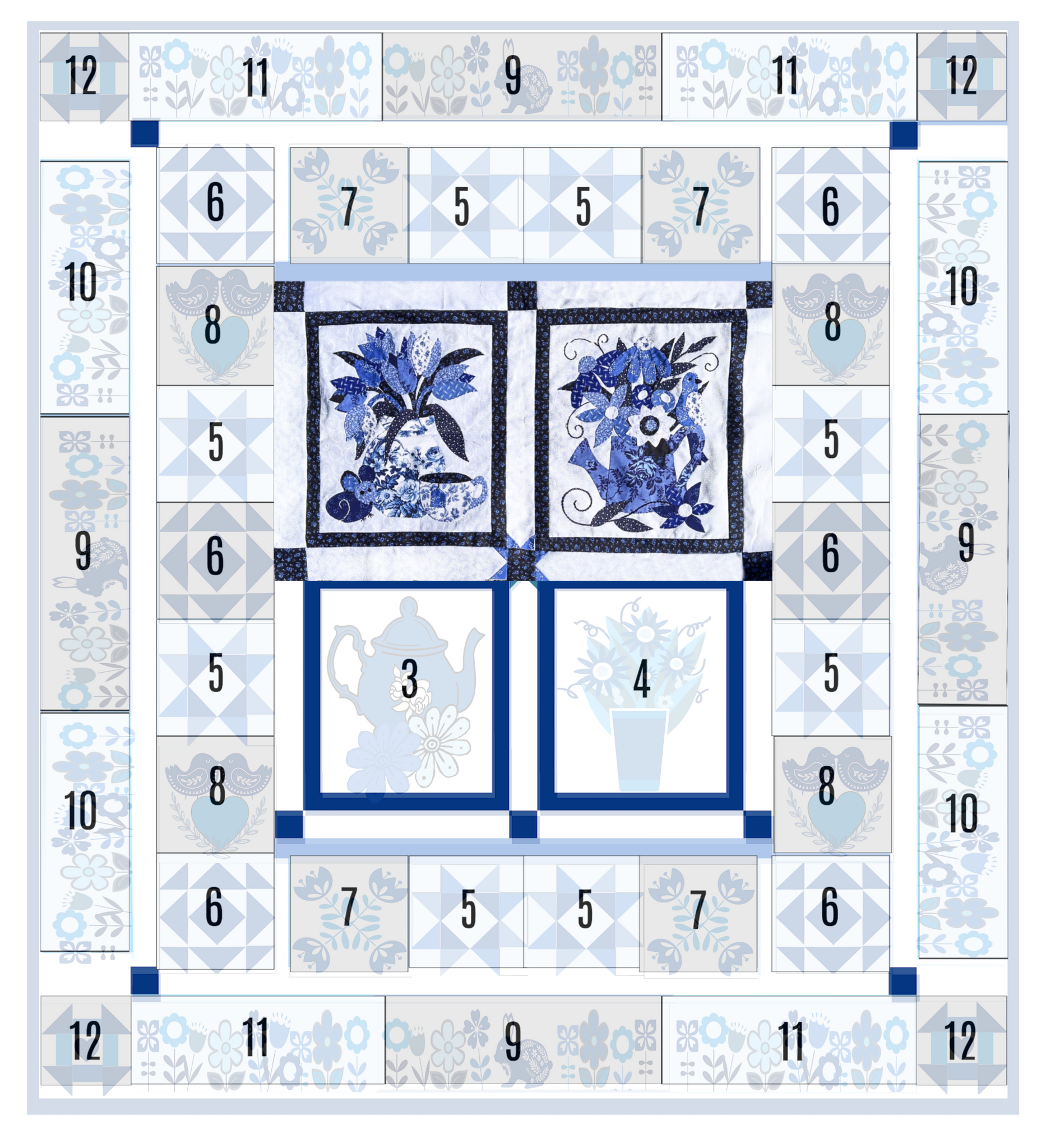 This beautiful applique pattern is inspired by delft pottery and features many shades of blue and white. Make it in blues, or experiment with color. Either way, it will sure to become an heirloom quilt!