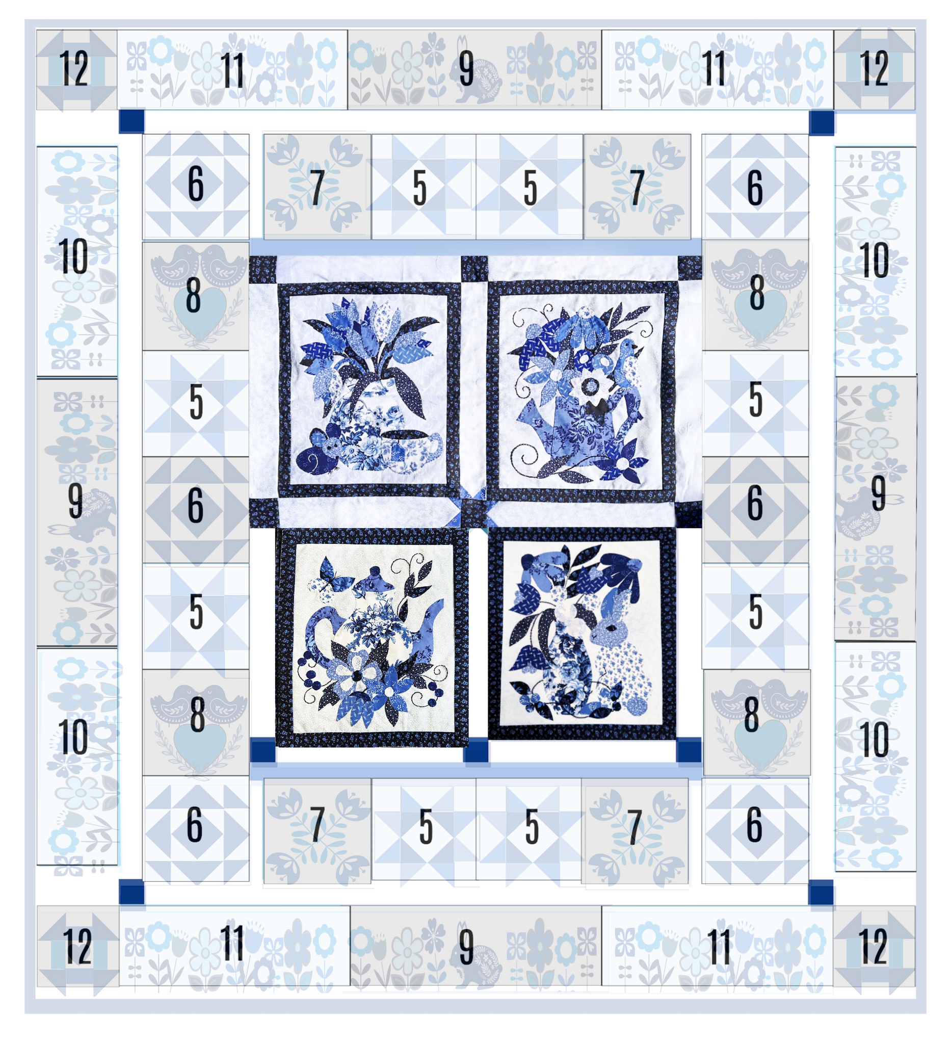This beautiful applique pattern is inspired by delft pottery and features many shades of blue and white. Make it in blues, or experiment with color. Either way, it will sure to become an heirloom quilt!