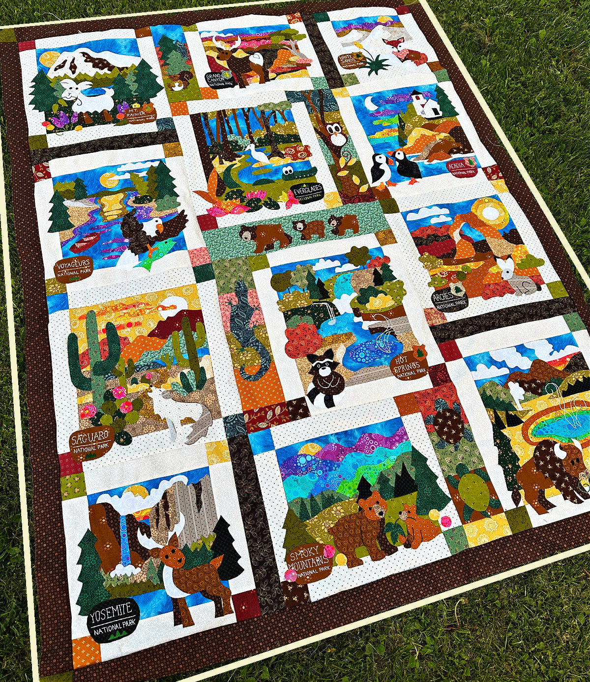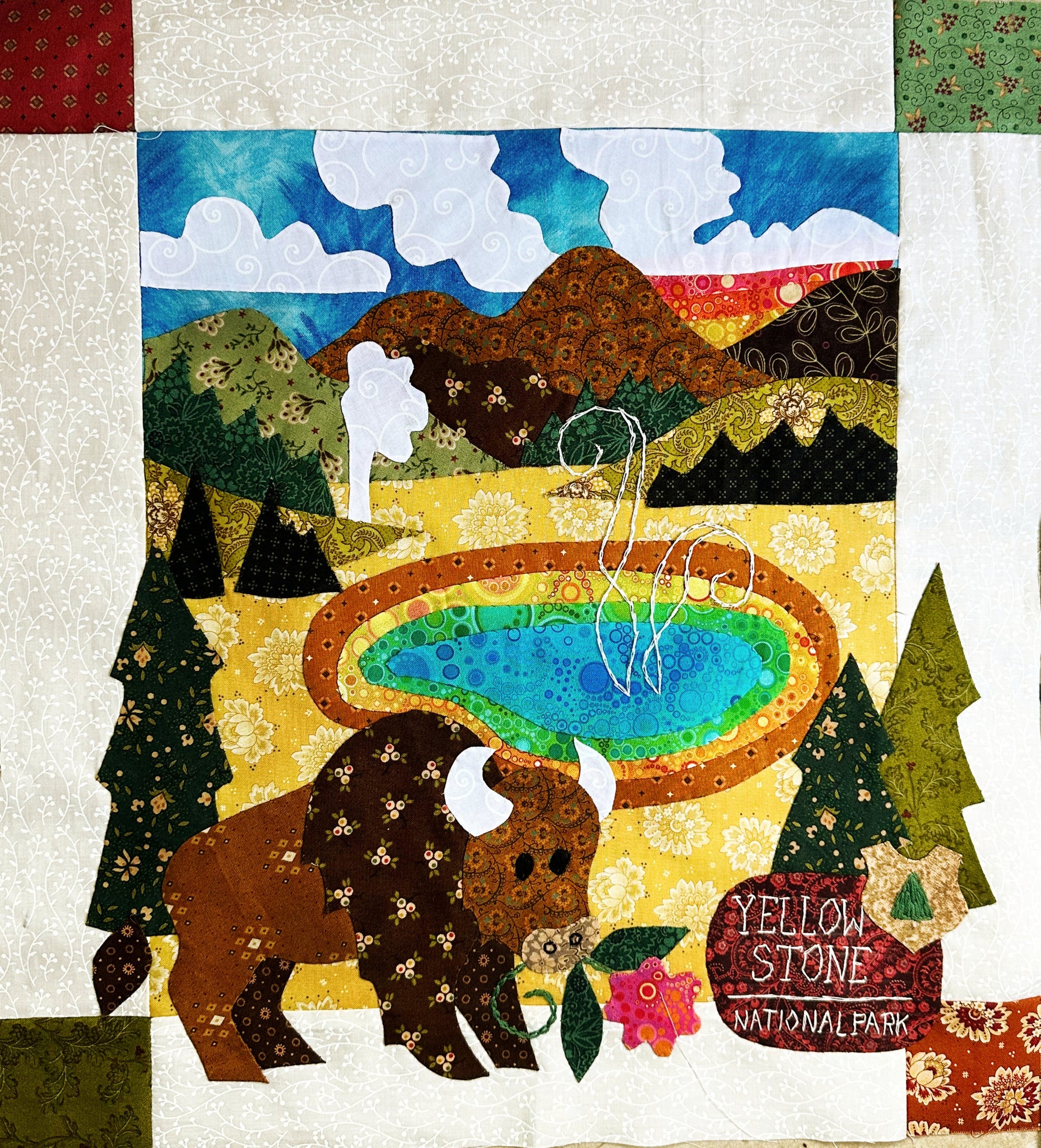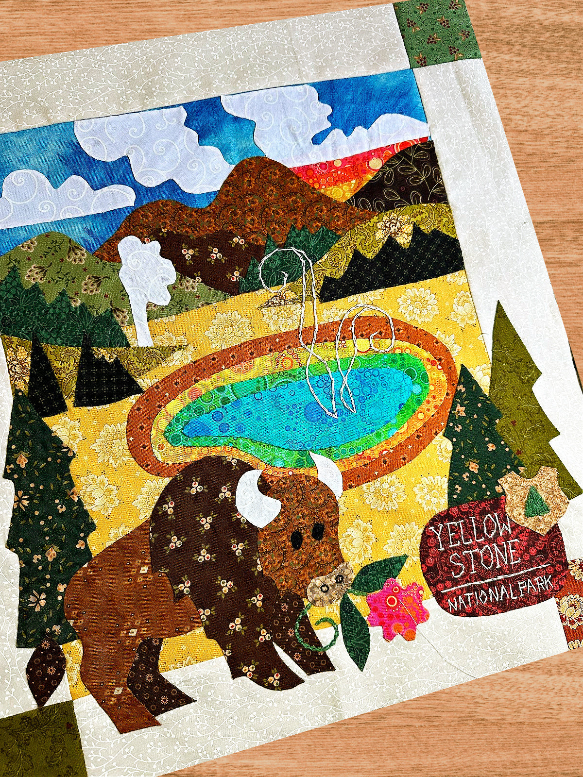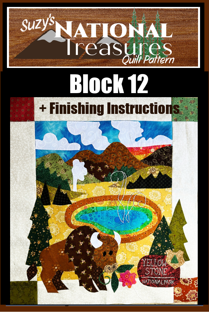 Block 12 features Yellowstone National Park and a sweet buffalo that call it home. This pattern also includes instructions for finishing this beautiful quilt.