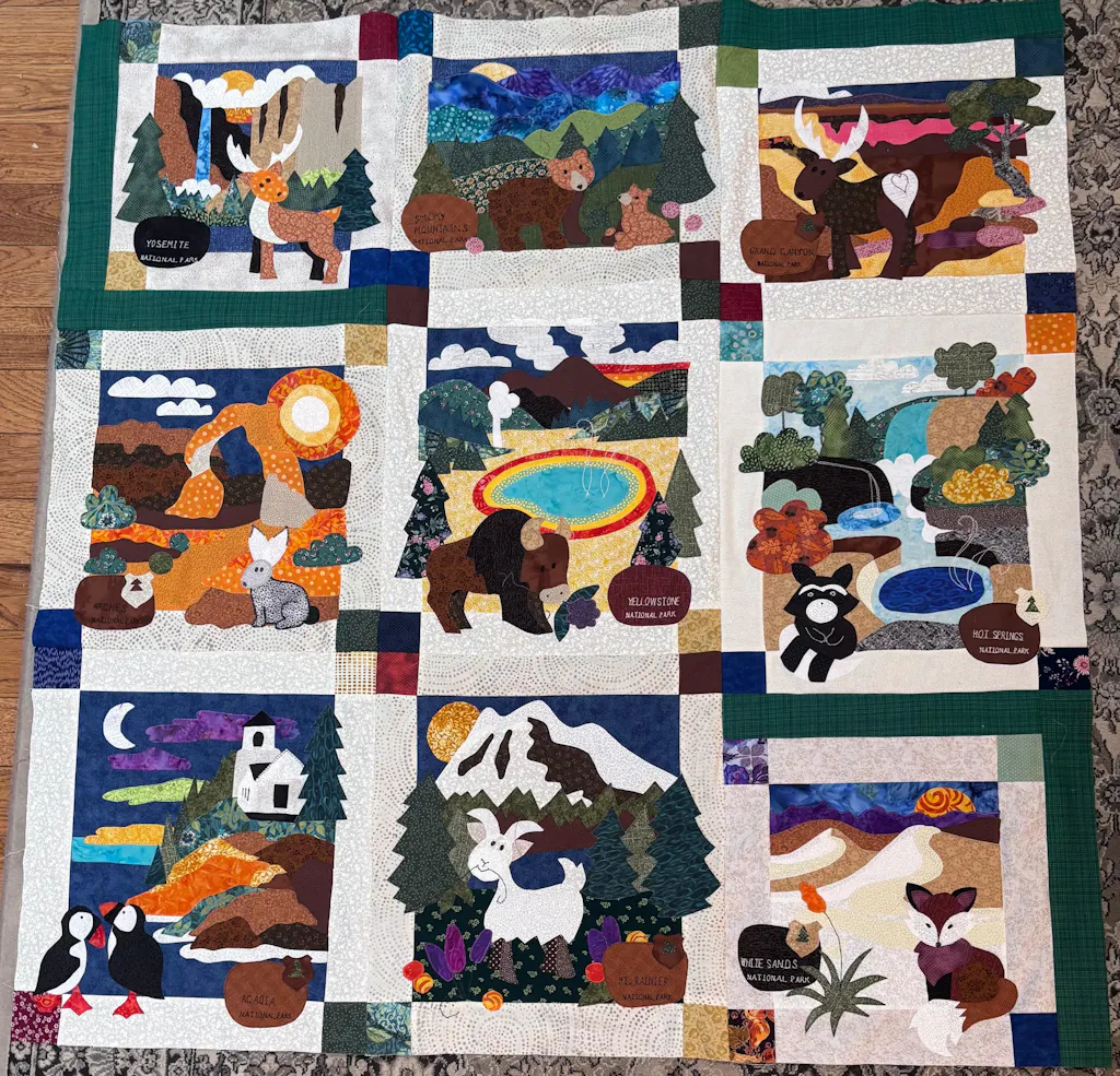 Suzy’s National Treasures features 12 different national parks and the animals that live there. Each block pattern can be appliqued using your favorite technique, and added touches of simple embroidery.
