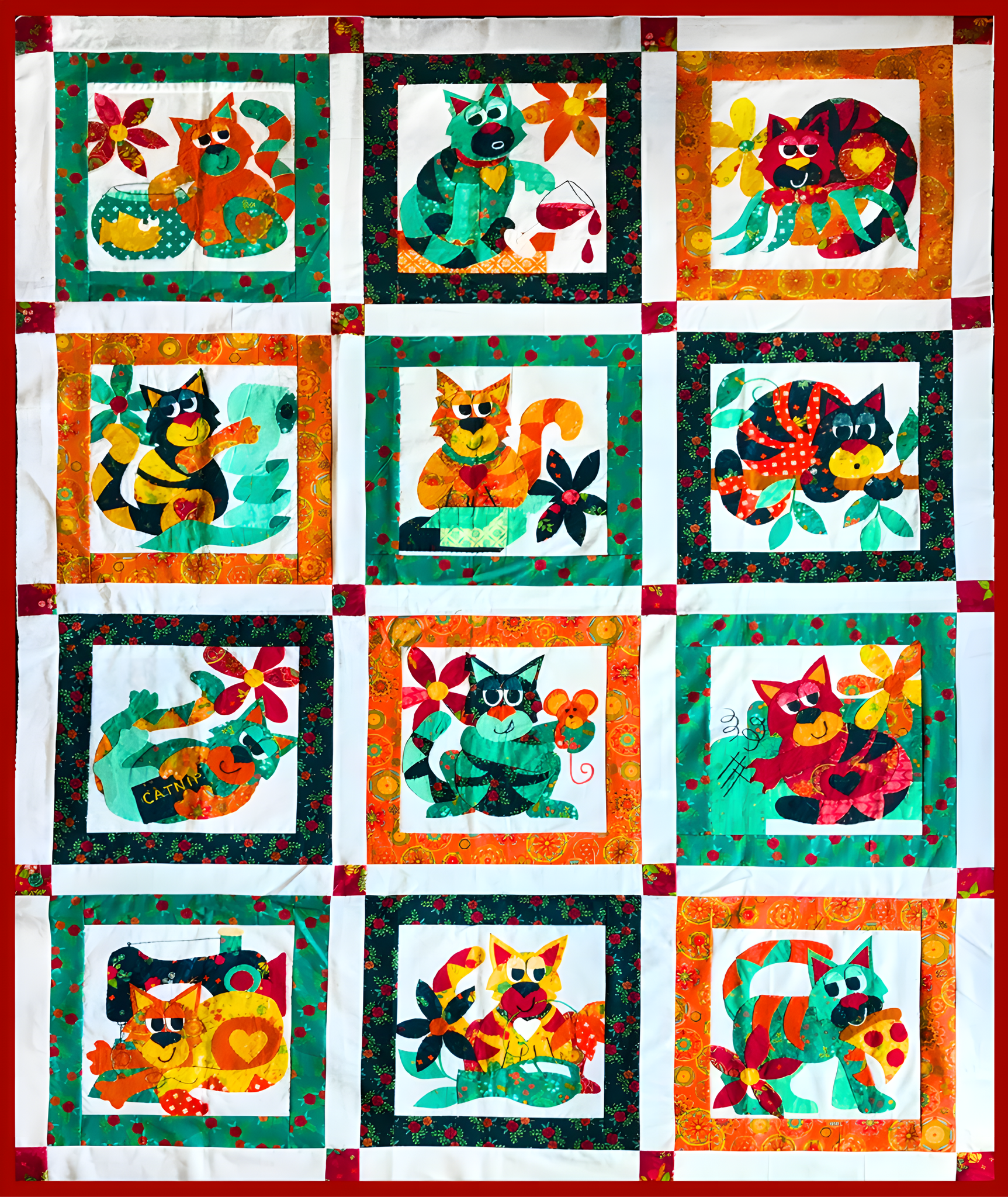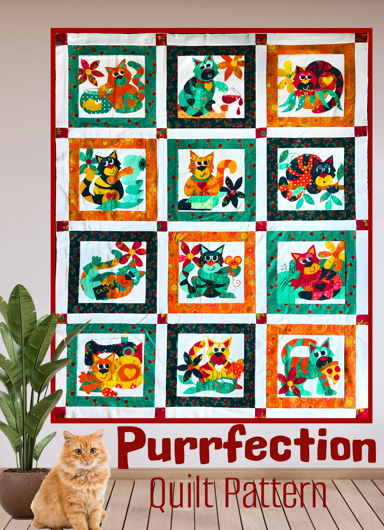 Purrfection features a bunch of mischievous cats getting into trouble only the way cats can do.  This whimsical pattern is fun to put together and will add a sweet homespun touch to your decor!  Use brightly colored teals, oranges, reds and navy blue on white, or make it in your own style!
