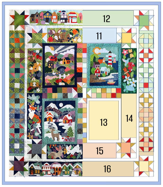 Join the Seasons Blessings Sew Along! Create a whimsical applique quilt that features all four seasons. This unique take on the four seasons is sure to become an cherished heirloom.