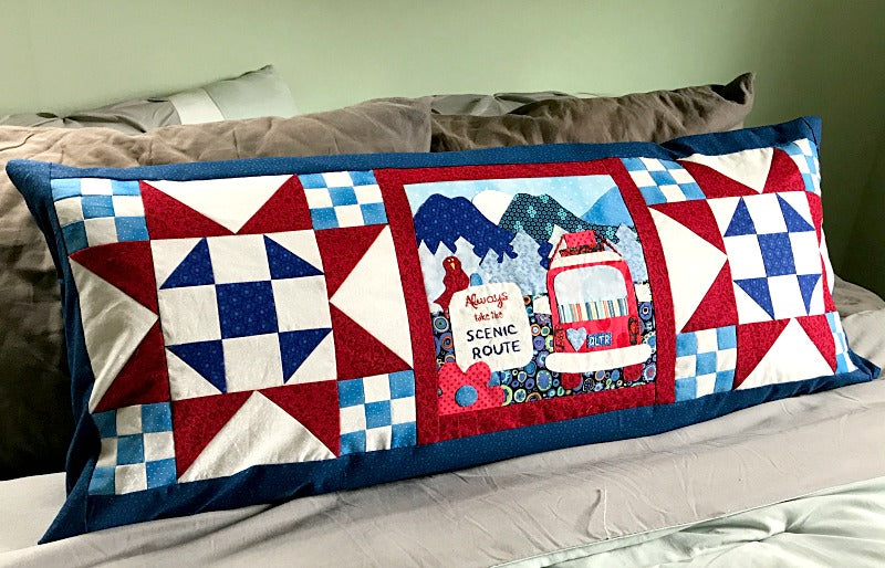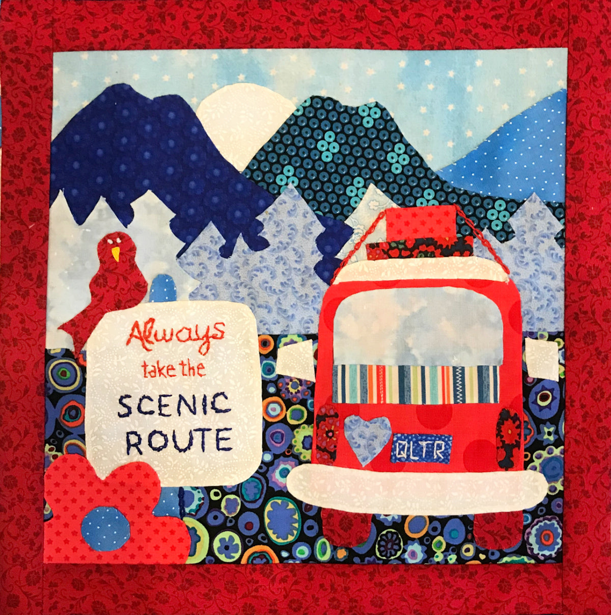 Take the Scenic Route is perfect for July. Or display year round! This pattern features a vintage bus and the promise of summer vacation.bThis pattern includes applique and just a touch of hand embroidery and includes all templates and instructions to complete five different projects.