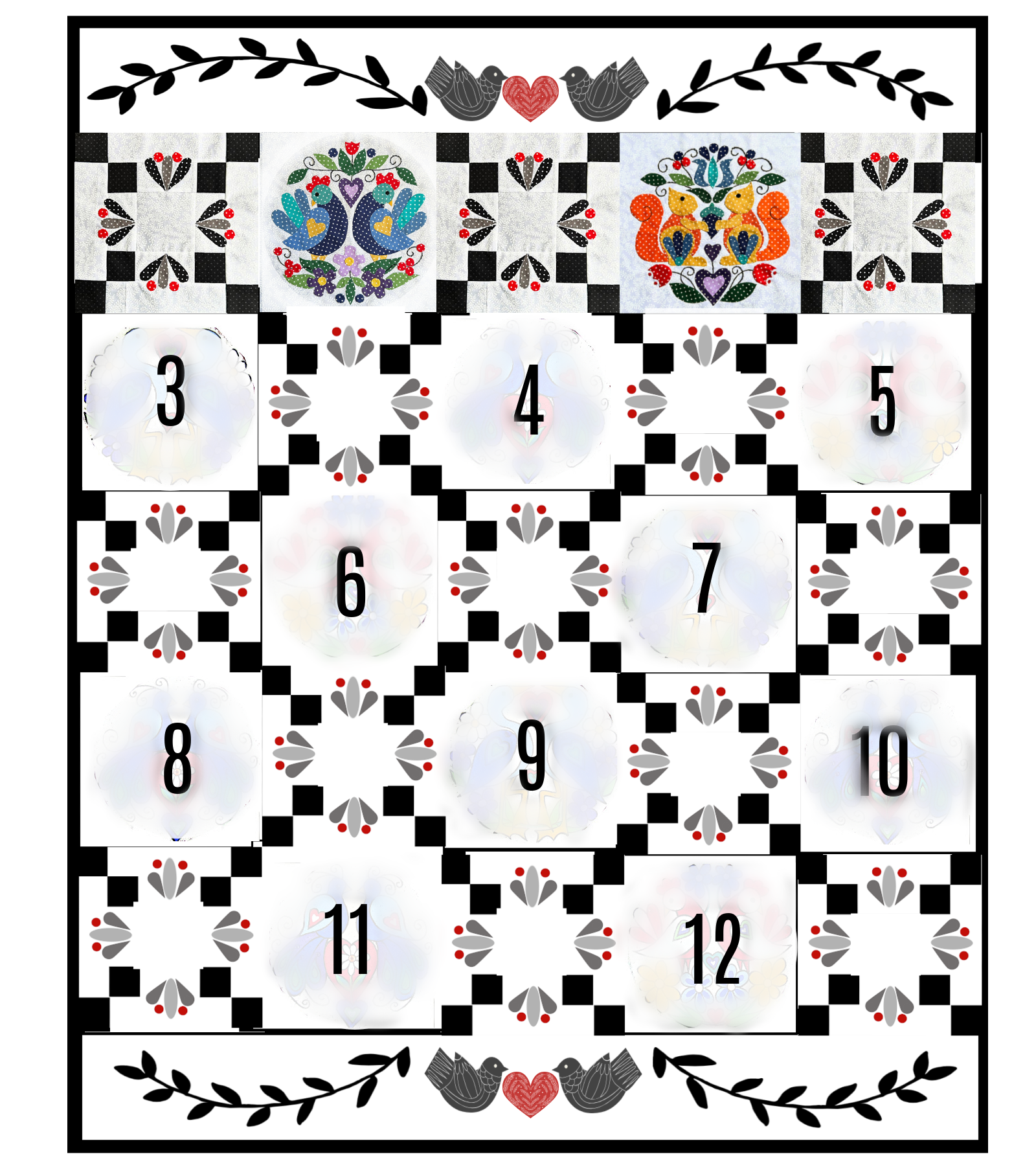 This beautiful applique pattern is inspired by Pennsylvania Dutch Folkart. Make it in bright colors, polka dots, or choose your own theme! Either way, it will sure to become an heirloom quilt!